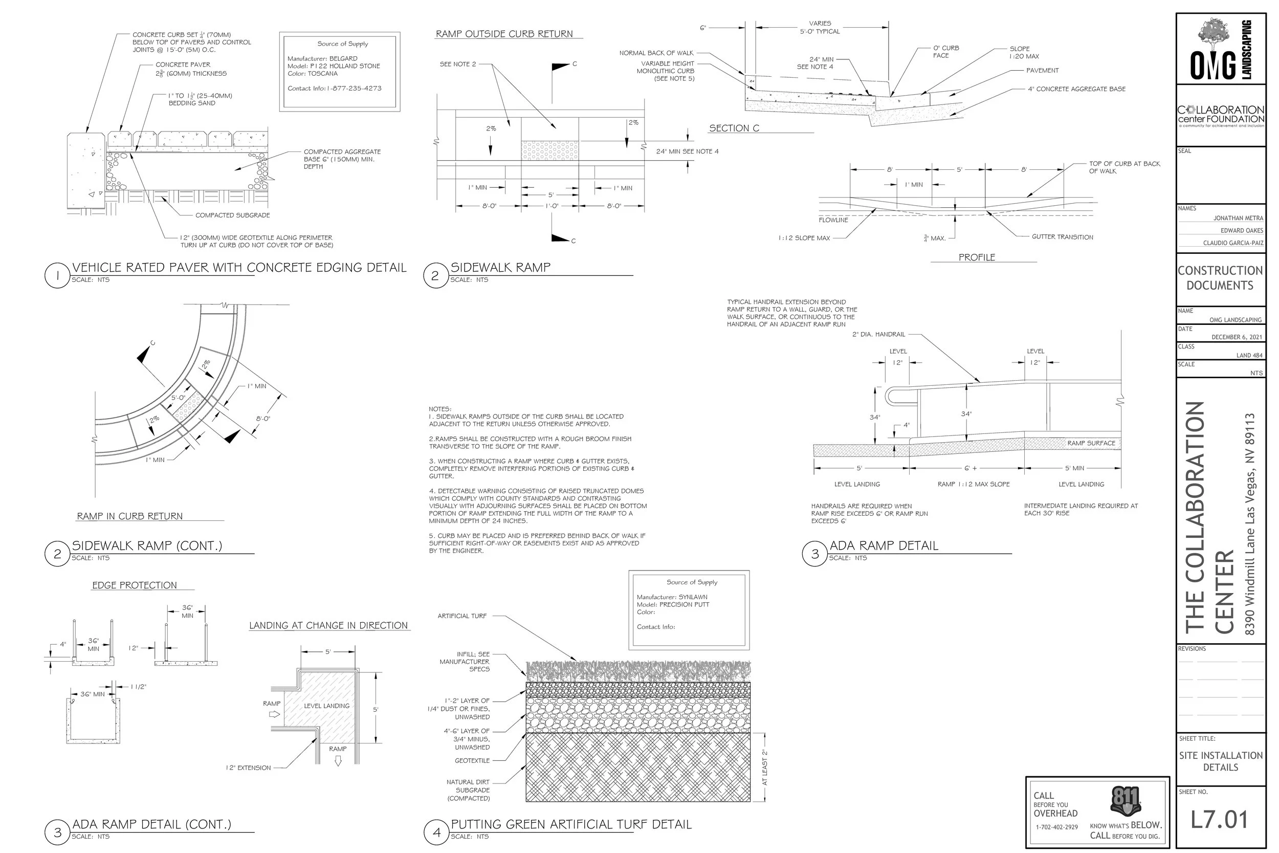 The Collaboration Center Foundation @Why Ranch is a facility that assist families and children with disabilities. This includes learning opportunities, recreational activities, therapy, and inclusivity. What was formerly a site that housed horses, theatrical equipment and housing was being converted to The Collaboration Center Foundation. In this fourth year studio project we were tasked with designing on this real project site and understanding the design process, following the book titled Landscape Architecture Documentation Standards by Design Workshop. In groups of three we went through the schematic design phase, design development phase, and construction documentation phase. Using Autocad we learned how to Xref, create line weights, title blocks, label, organize, and create custom blocks in order to finalize 24”x36” CD’s.